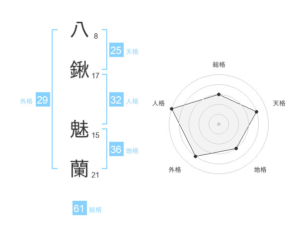 八鍬 魅蘭さんの人格は32画の5点!