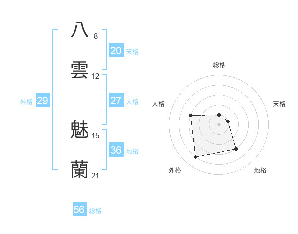 八雲 魅蘭さんの総格は56画の1点!