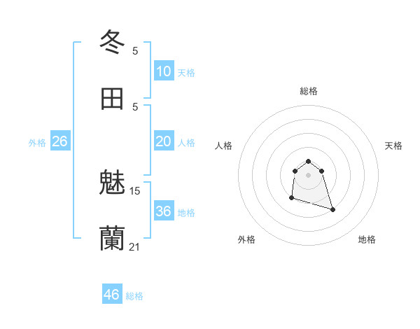 冬田 魅蘭さんの総格は46画の1点!