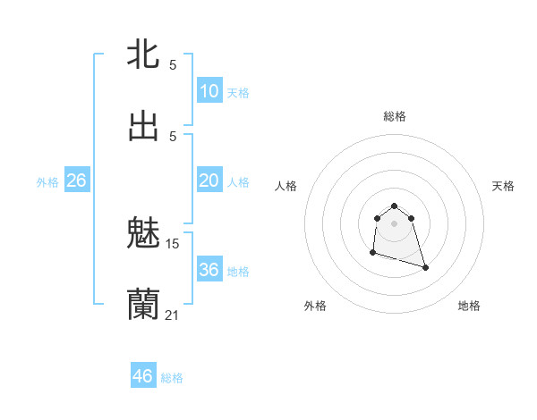 北出 魅蘭さんの総格は46画の1点!