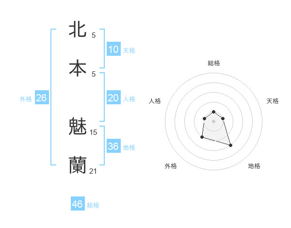 北本 魅蘭さんを姓名の画数から五運を鑑定