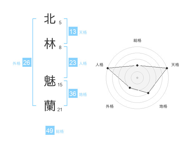 北林 魅蘭さんを姓名の画数から五運を鑑定