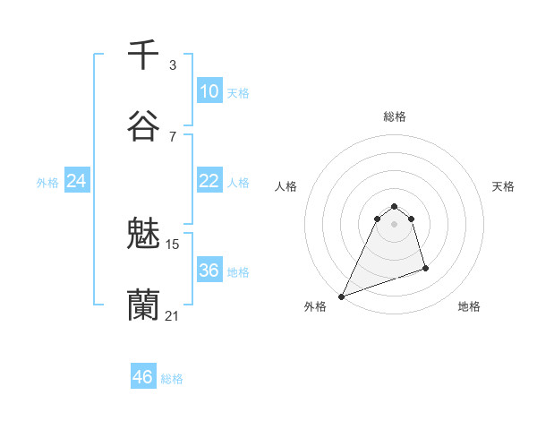 千谷 魅蘭さんの外格は24画の5点!