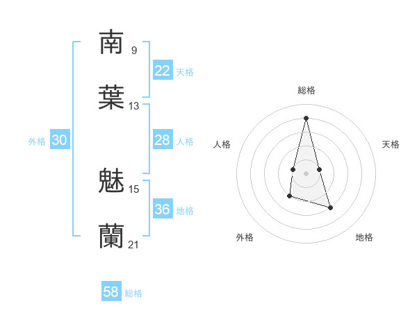 南葉 魅蘭さんの総格は58画の4点!