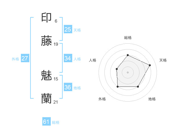 印藤 魅蘭さんの総格は61画の3点!