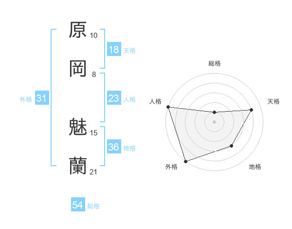 原岡 魅蘭さんの総格は54画の1点!