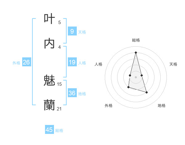 叶内 魅蘭さんの総格は45画の4点!