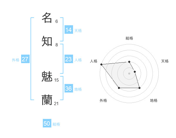 名知 魅蘭さんを姓名の画数から五運を鑑定