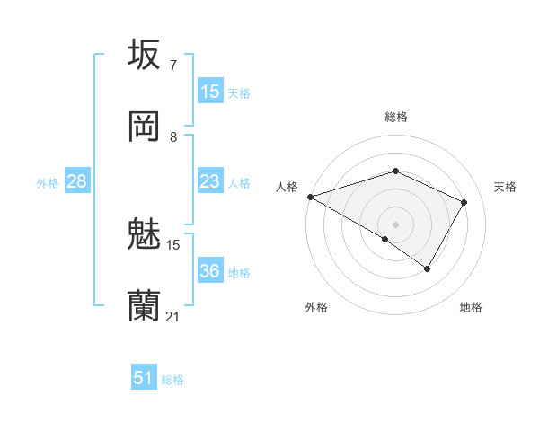 坂岡 魅蘭さんの総格は51画の3点!