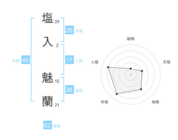 塩入 魅蘭さんの外格は45画の4点!