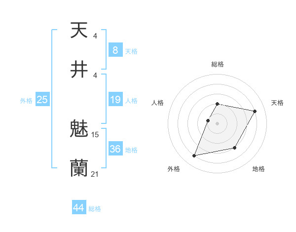 天井 魅蘭さんの総格は44画の2点!