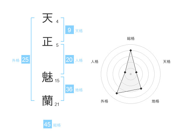 天正 魅蘭さんの総格は45画の4点!