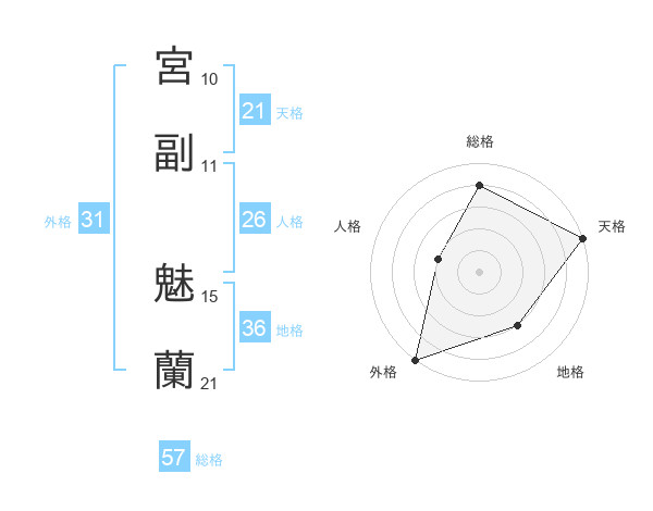 宮副 魅蘭さんを姓名の画数から五運を鑑定