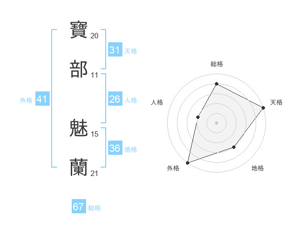 寶部 魅蘭さんの総格は67画の4点!