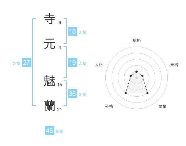 寺元 魅蘭さんの総格は46画の1点!