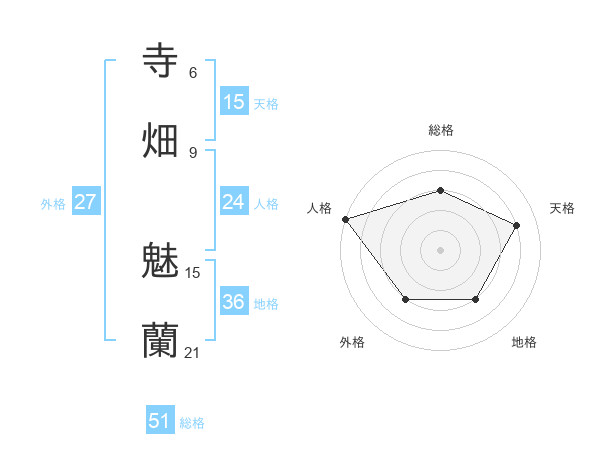 寺畑 魅蘭さんを姓名の画数から五運を鑑定