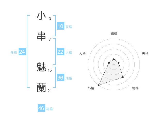 小串 魅蘭さんの総格は46画の1点!