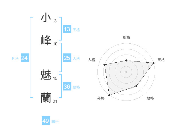 小峰 魅蘭さんの総格は49画の2点!
