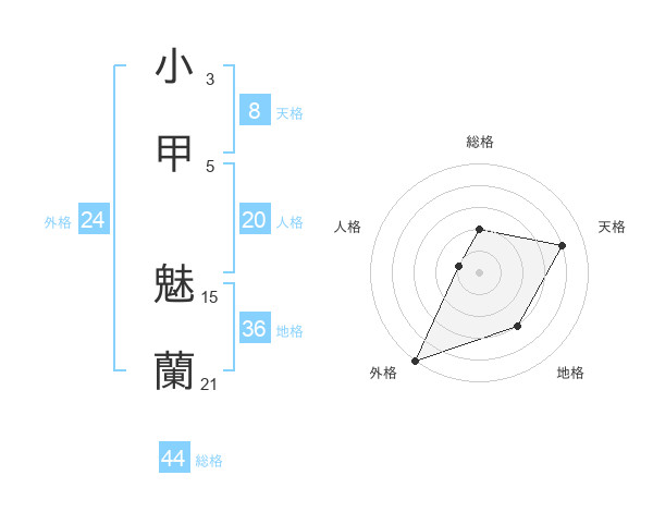 小甲 魅蘭さんを姓名の画数から五運を鑑定