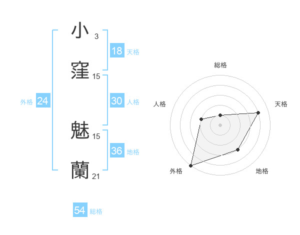 小窪 魅蘭さんの総格は54画の1点!