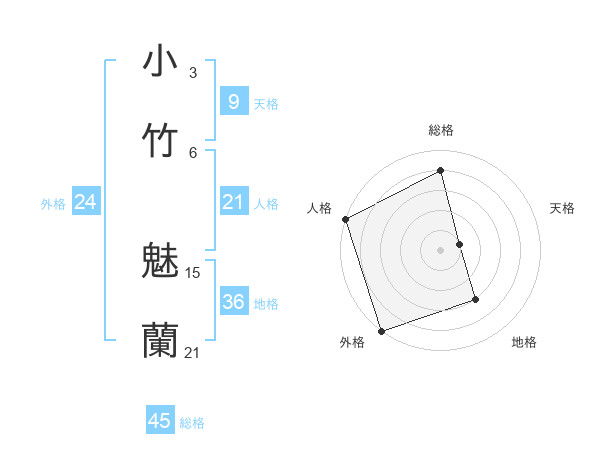 小竹 魅蘭さんの総格は45画の4点!