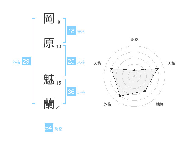 岡原 魅蘭さんの天格は18画の4点!
