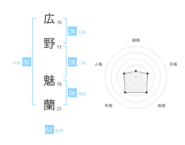 広野 魅蘭さんの天格は26画の2点!