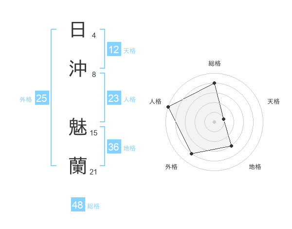 日沖 魅蘭さんの総格は48画の4点!