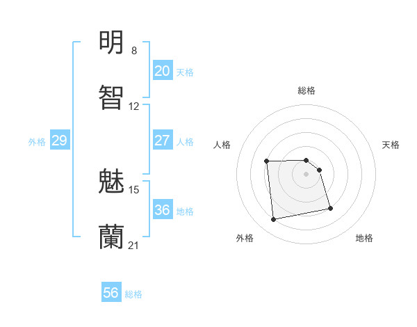明智 魅蘭さんの総格は56画の1点!