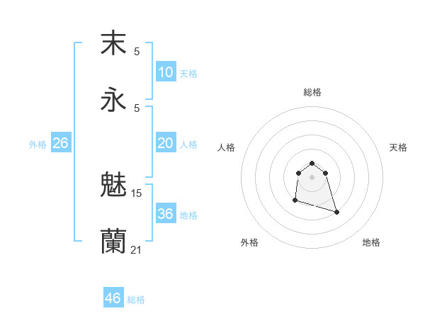 末永 魅蘭さんの総格は46画の1点!