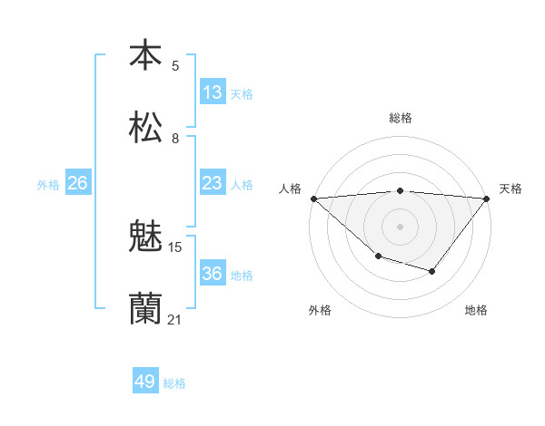 本松 魅蘭さんの天格は13画の5点!