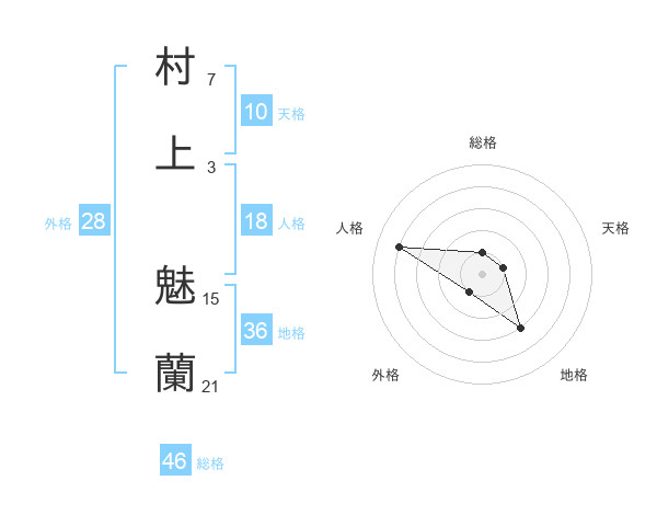 村上 魅蘭さんを姓名の画数から五運を鑑定