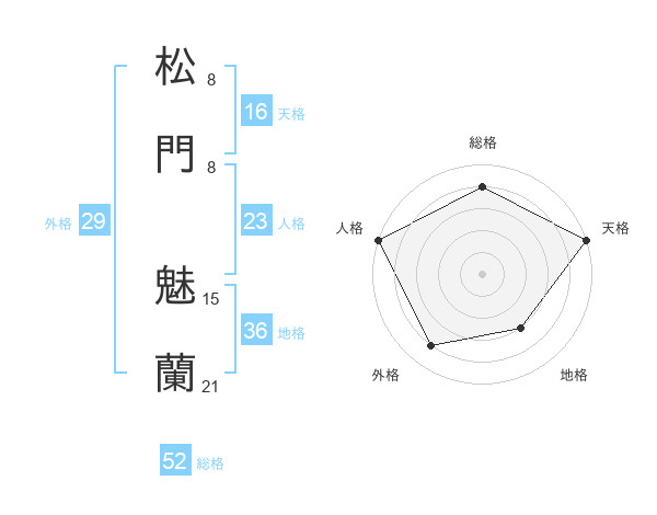 松門 魅蘭さんを姓名の画数から五運を鑑定