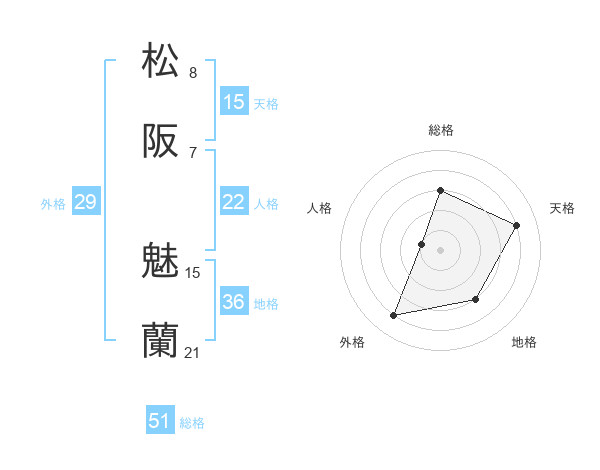 松阪 魅蘭さんの総格は51画の3点!