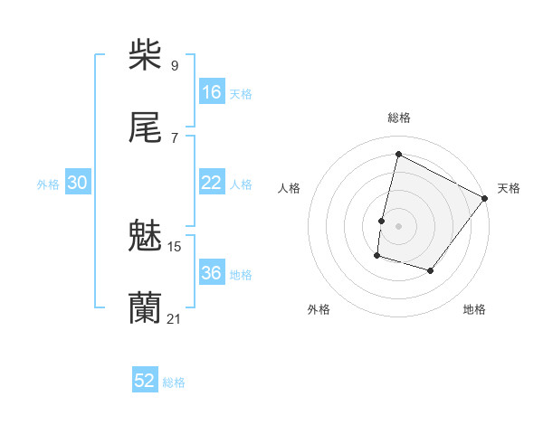 柴尾 魅蘭さんの総格は52画の4点!