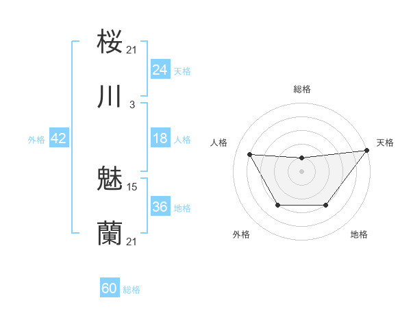 桜川 魅蘭さんを姓名の画数から五運を鑑定