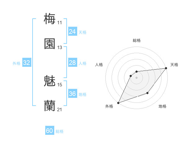 梅園 魅蘭さんを姓名の画数から五運を鑑定