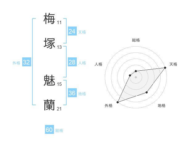 梅塚 魅蘭さんの天格は24画の5点!
