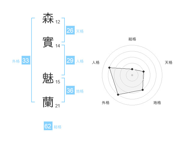 森實 魅蘭さんを姓名の画数から五運を鑑定