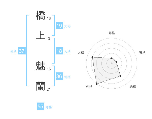 橋上 魅蘭さんを姓名の画数から五運を鑑定