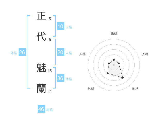 正代 魅蘭さんの総格は46画の1点!