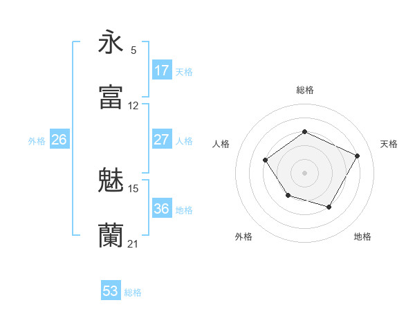 永富 魅蘭さんを姓名の画数から五運を鑑定
