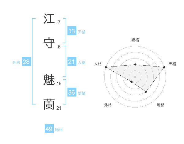 江守 魅蘭さんの総格は49画の2点!