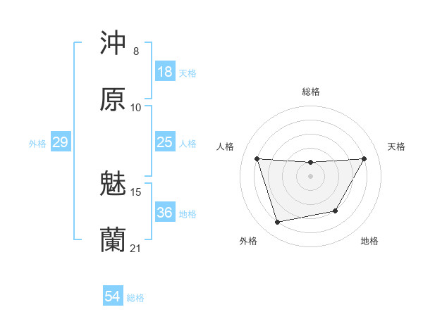 沖原 魅蘭さんを姓名の画数から五運を鑑定