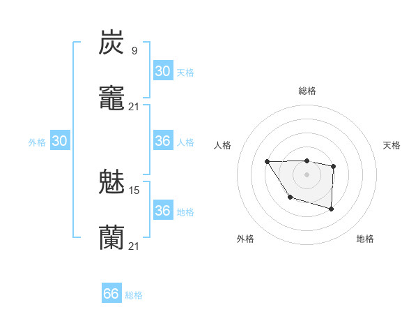炭竈 魅蘭さんを姓名の画数から五運を鑑定