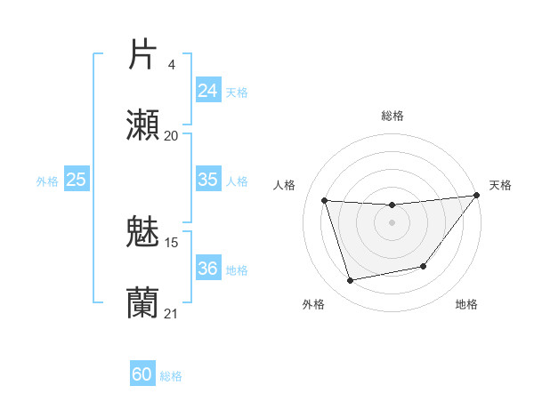 片瀬 魅蘭さんを姓名の画数から五運を鑑定