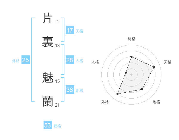 片裏 魅蘭さんを姓名の画数から五運を鑑定