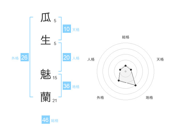 瓜生 魅蘭さんの総格は46画の1点!
