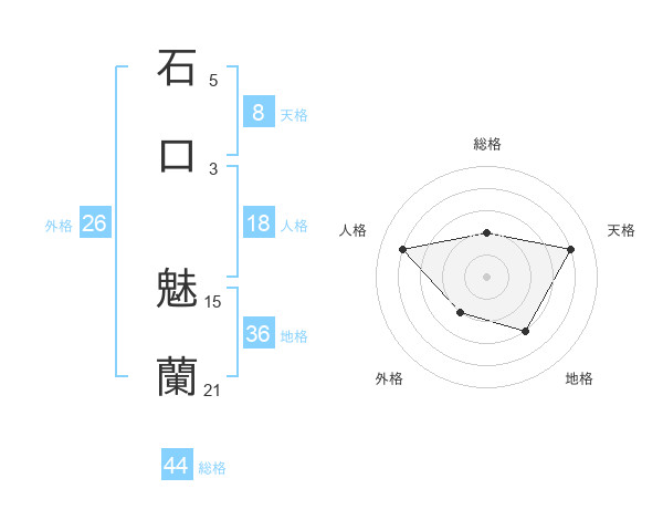 石口 魅蘭さんを姓名の画数から五運を鑑定