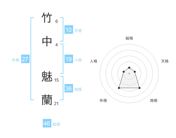 竹中 魅蘭さんの総格は46画の1点!